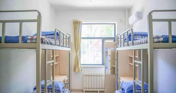 干净整洁的宿舍楼,标准4人/间,配备独立书桌及衣柜,方便学生课余时间在宿舍学习和生活。