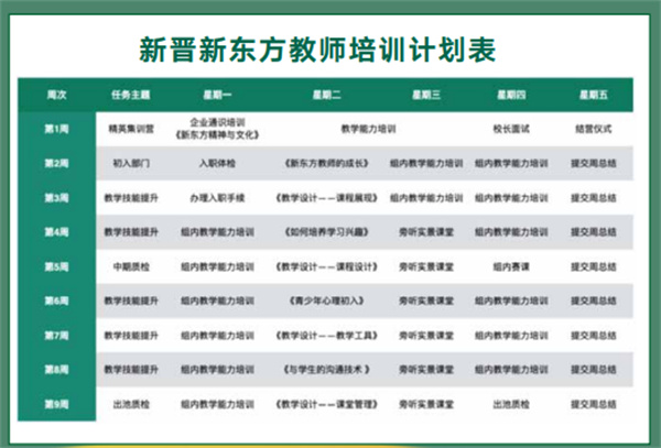 抓成长:经过两次面试的新师获得最终60天岗前培训机会,60天内需要完成所授课程的备课任务;刷完全国5年内高考真题、山东省各地市期中期末试题、模拟试题、集团功底试题;每周至少一次旁听成熟教师实景课程;每周至少一次通识性教学技巧技能培训。