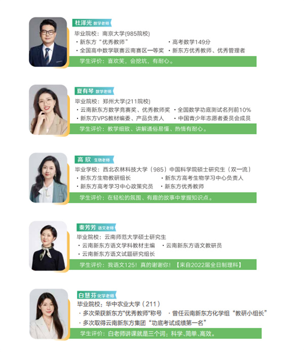 云南新东方全日制高考学习中心体系健全,其中全日制学习中心教师团队,经过13年办学经验沉淀,已形成行业超尖的教师阵容。