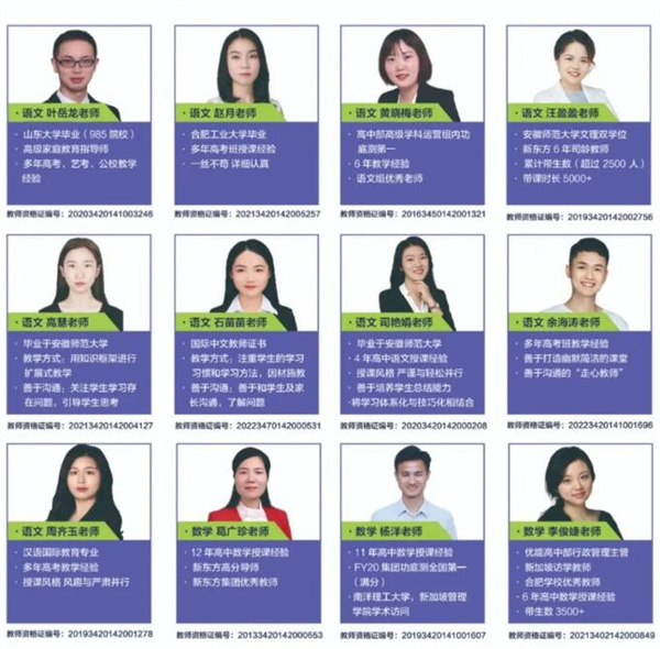 合肥新东方高复学校,21位高学历老师授课,班主任只带2个班,其他学科老师最多带2个班,可以全身心投入班级教学与管理。平均8届高考毕业班的教龄,授课时长超5000小时,教学阅历丰富;平均教授学生超5500人次,多样的教授风格满足不同孩子需求。