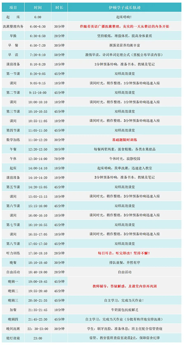 专职班主任24小时陪伴式管理,及时反馈学生情况,解决学生生活和学习中遇到的问题。