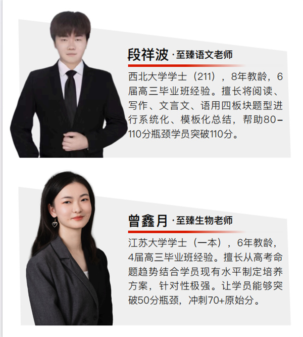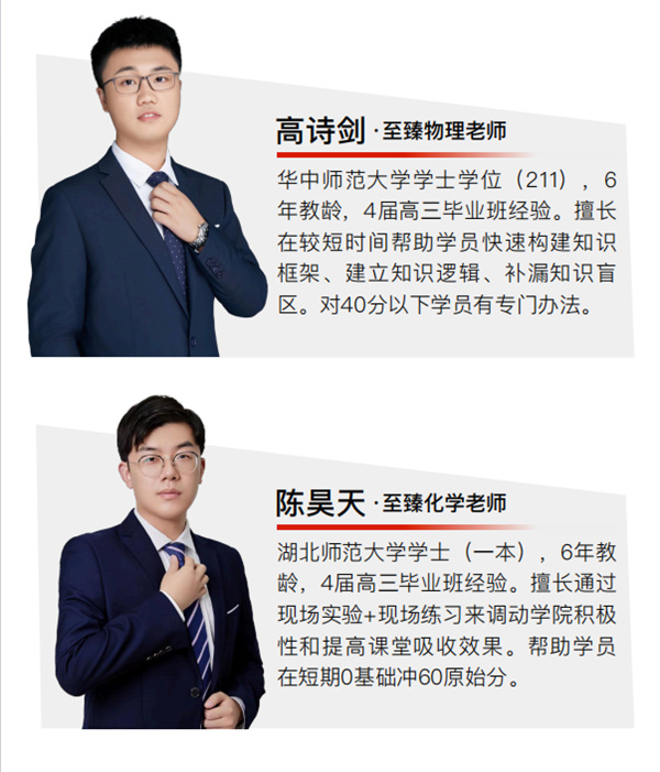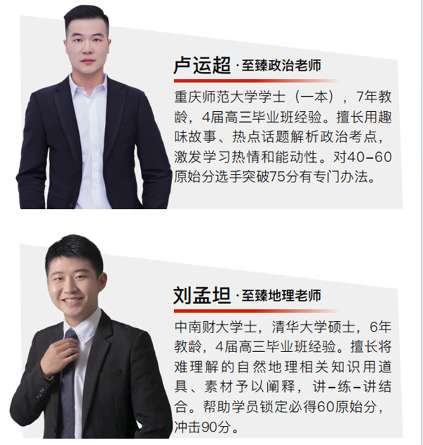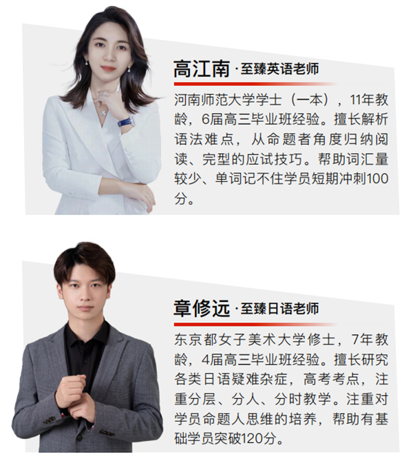 至臻高考拥有一支阵容强大的教师团队,我们大力引进优秀教师,致力于打造一支教学水平过硬、教学风格优良的师资团队。我们的教师均来自各大高校的青年骨干,全职任教,高考教学经验均在5年以上,专业知识扎实,教学能力突出。我们了解考生喜好,了解考生的基础。我们知道如何让考生不受苦,也能学得很好。他们具备深厚的团队作战经验,能够兼顾整体效益,合力调控各科学习,让学生平衡发展,实现总分最大化。