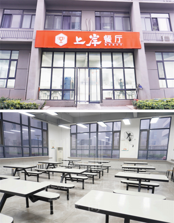 上岸食堂:根据学生身体情况,制定营养餐食,每天八菜一汤,还有额外加餐:水果、麦当劳、奶茶..··全天候为师生们提供定制中餐服务,让师生享用绿色、健康、安全、营养的各类膳食。