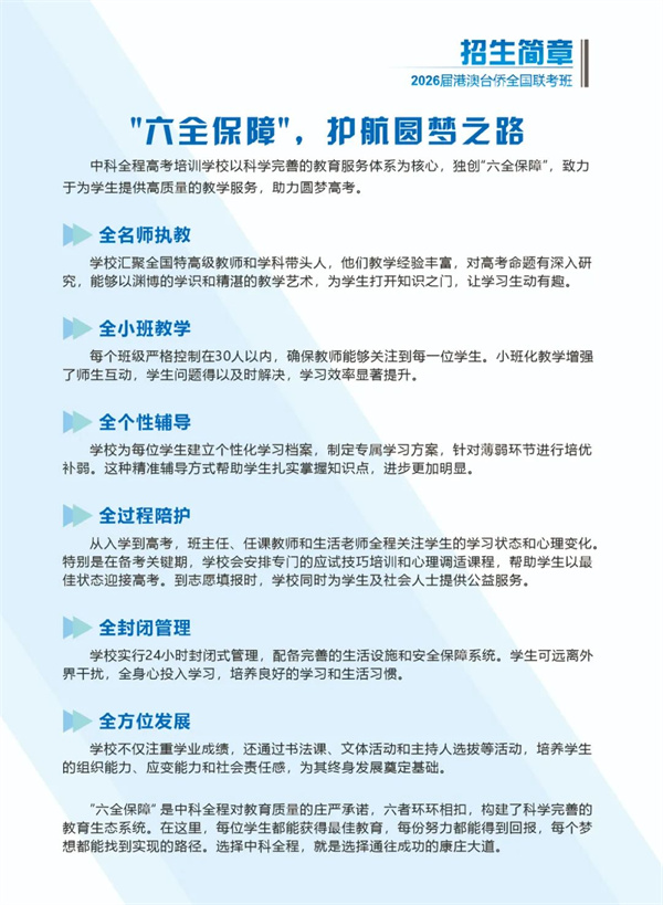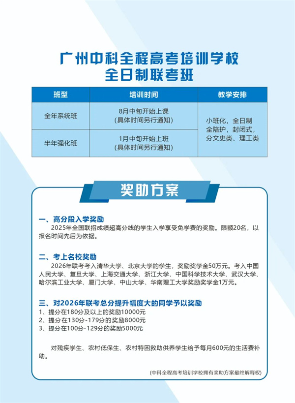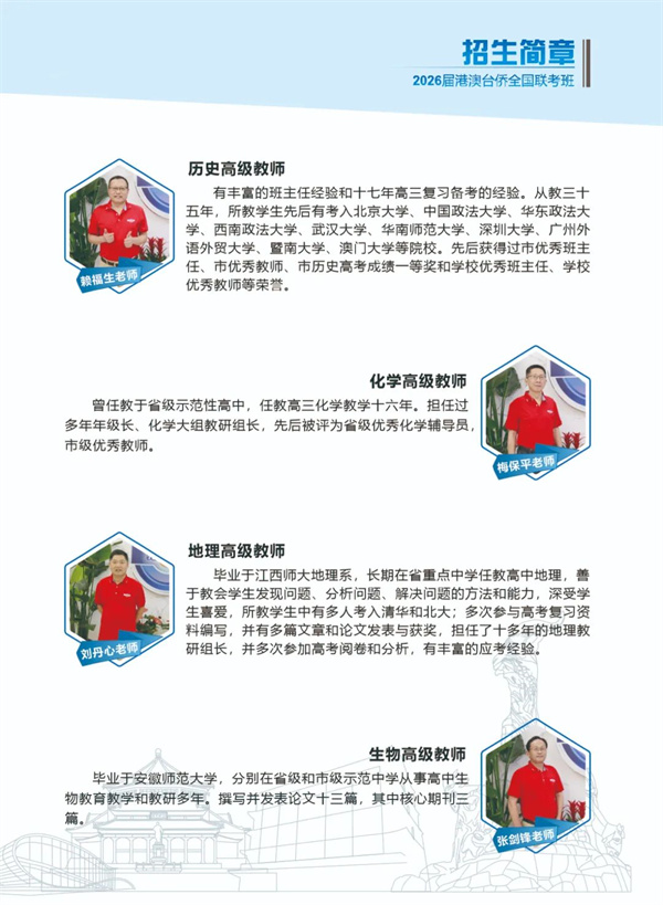 课程简介:广州中科全程港澳台侨联考强化班小班化,全日制,全陪护,封闭式,分文史类、理工类,教师团队经验丰富,每位老师均有自己独特的针对不同基础、不同类型学生的提分办法,同时善于激发学生学习激情······