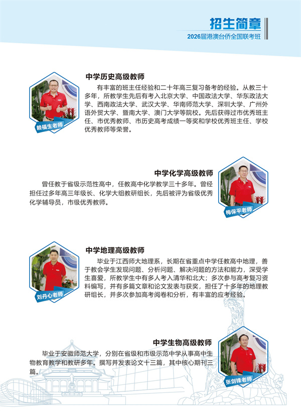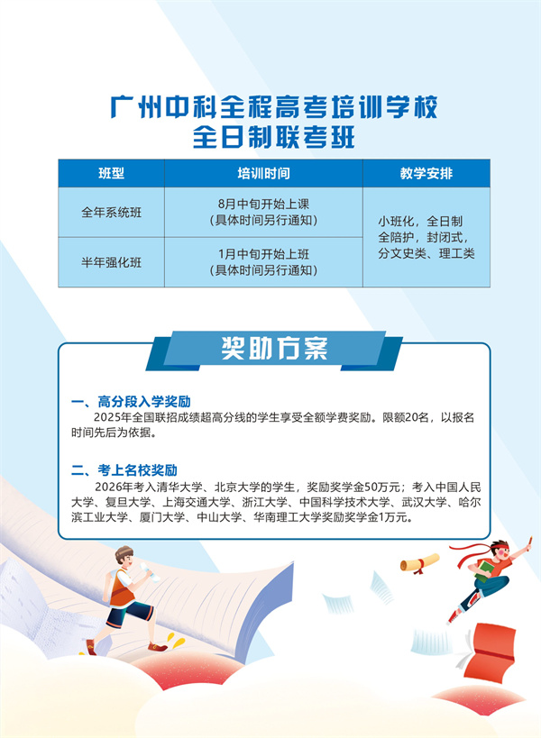 课程简介:广州中科全程港澳台侨联考强化班小班化,全日制,全陪护,封闭式,分文史类、理工类,教师团队经验丰富,每位老师均有自己独特的针对不同基础、不同类型学生的提分办法,同时善于激发学生学习激情······